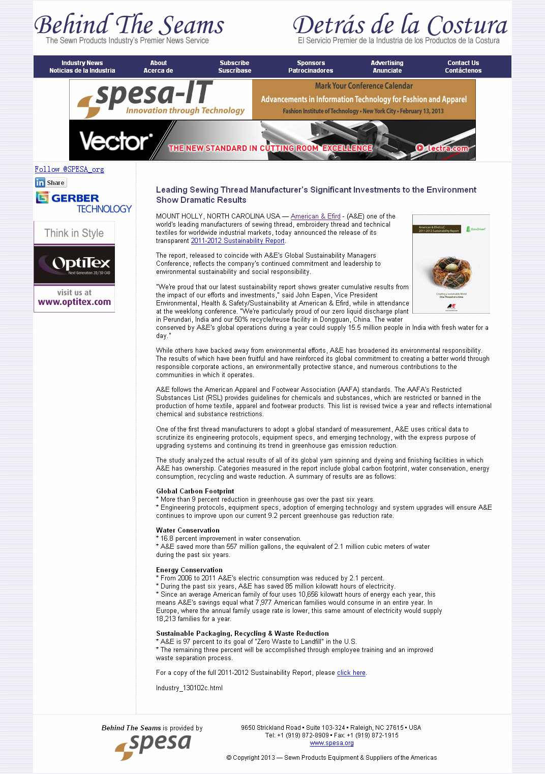 報道中說,A&E作為************的縫紉線、繡花線和技術(shù)紡織品供應商,近期宣布其2011年—2012年可持續(xù)發(fā)展方案。此方案反映了A&E對環(huán)境保護和可持續(xù)發(fā)展的關(guān)注,并通過孜孜不倦的努力使其結(jié)出了豐碩的成果。A&E向全球承諾,我們將創(chuàng)造一個更美好的世界,通過負責任的企業(yè)行動、堅定保護環(huán)境的立場,從而使A&E足跡遍布之處留下更多綠意。