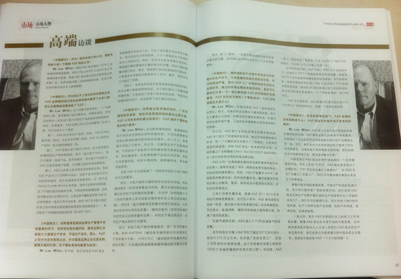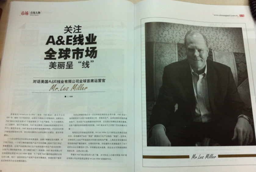 2013年3月7日,A&E全球首席運營官Les Miller先生在中國上海接受了《中國制衣》雜志的獨家訪問。