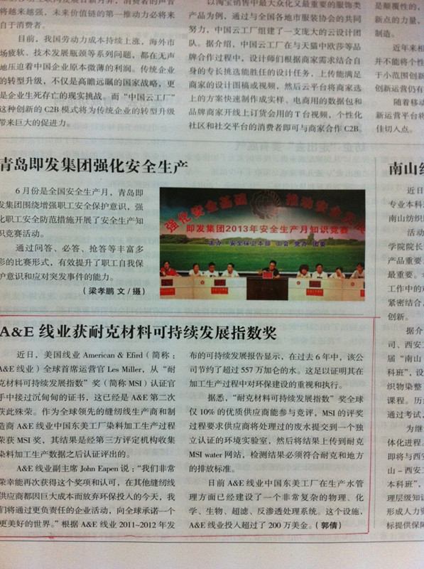 《紡織服裝周刊》撰文關(guān)注A&E線業(yè)