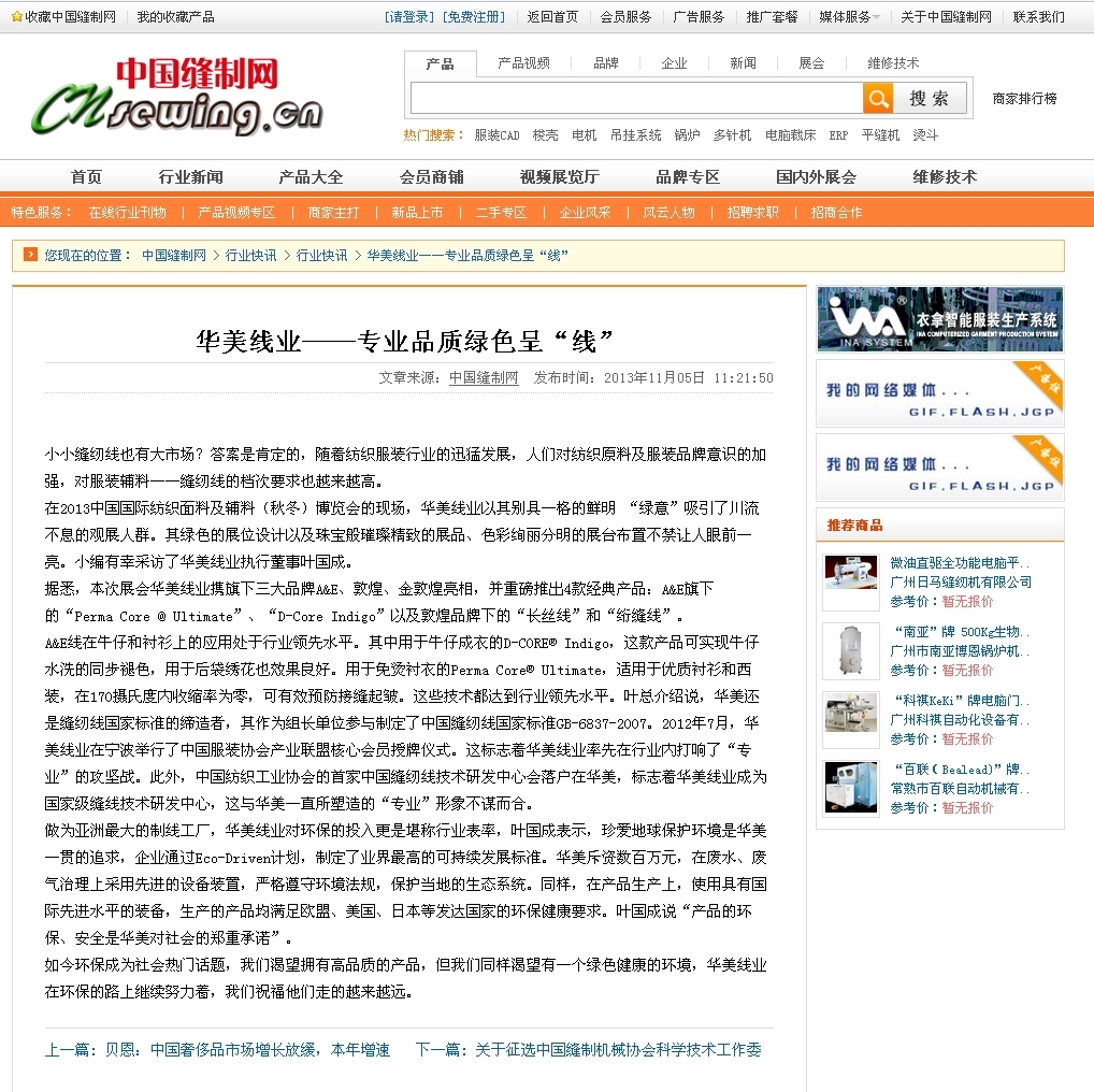 中國縫制網是為服裝生產企業(yè)及縫制設備行業(yè)提供制衣設備信息、貿易商務服務的專業(yè)門戶網站;是縫制設備廠商的網絡銷售和品牌推廣的服務平臺。